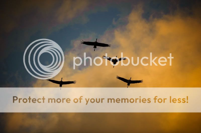 It amazes me how true that the best photos are found just before you stop shooting. I was walking back to my house and I looked up to find these cranes flying towards the sunset and I took shots until they disappeared far off into the distance, this one was my favorites.